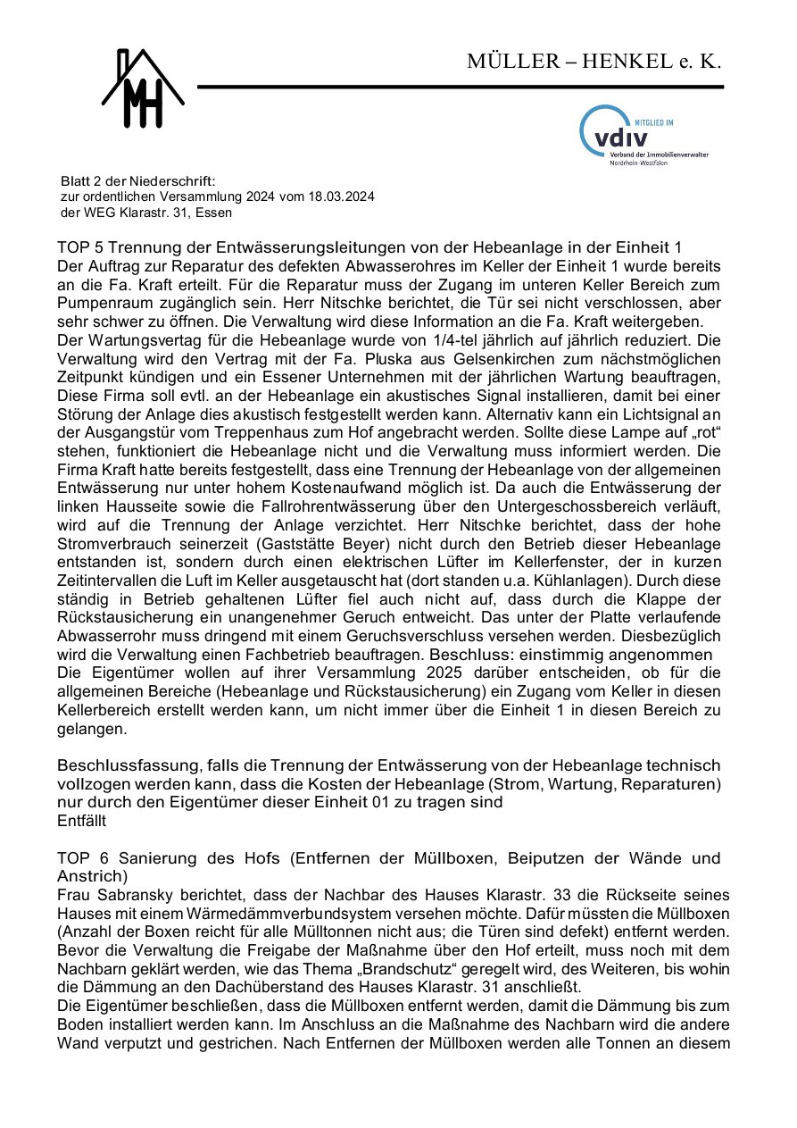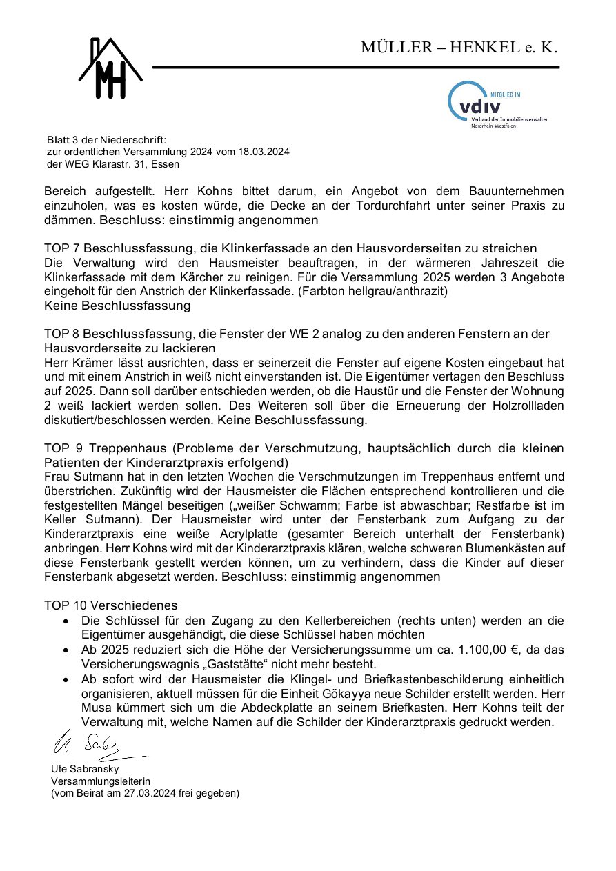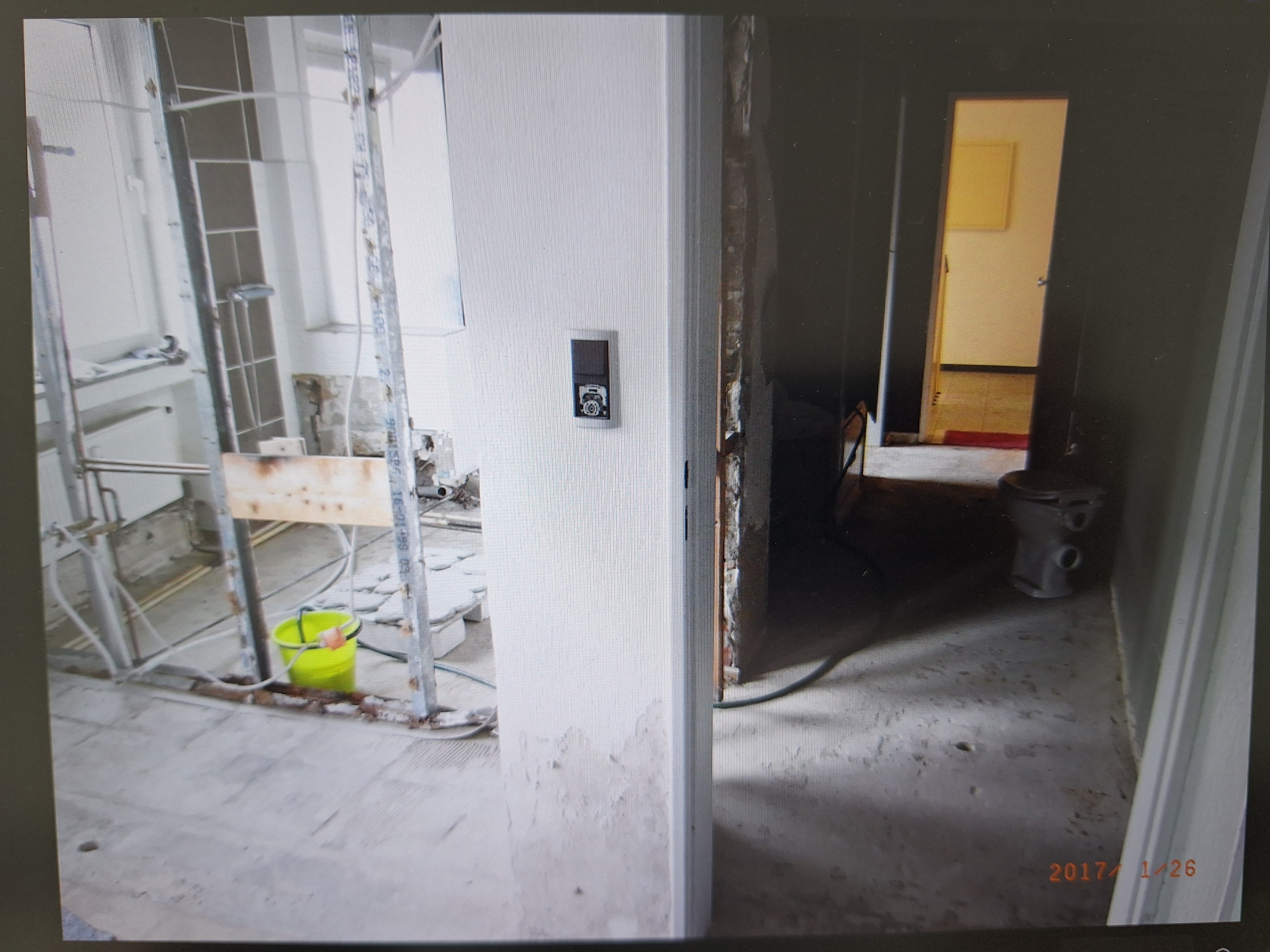 In der Wohnung im 3. OG wurde das Bad 1998 vergrößert u. die Küche dem Wohnraum zugeschlagen. 2017 gab es einen größeren Wasserschaden, wodurch das Bad u. die angrenzenden Räume (Küche u. Flur) komplett saniert wurden (inkl. neuem Pakett). Diese Wohnung wird zum 01.11.2025 frei.