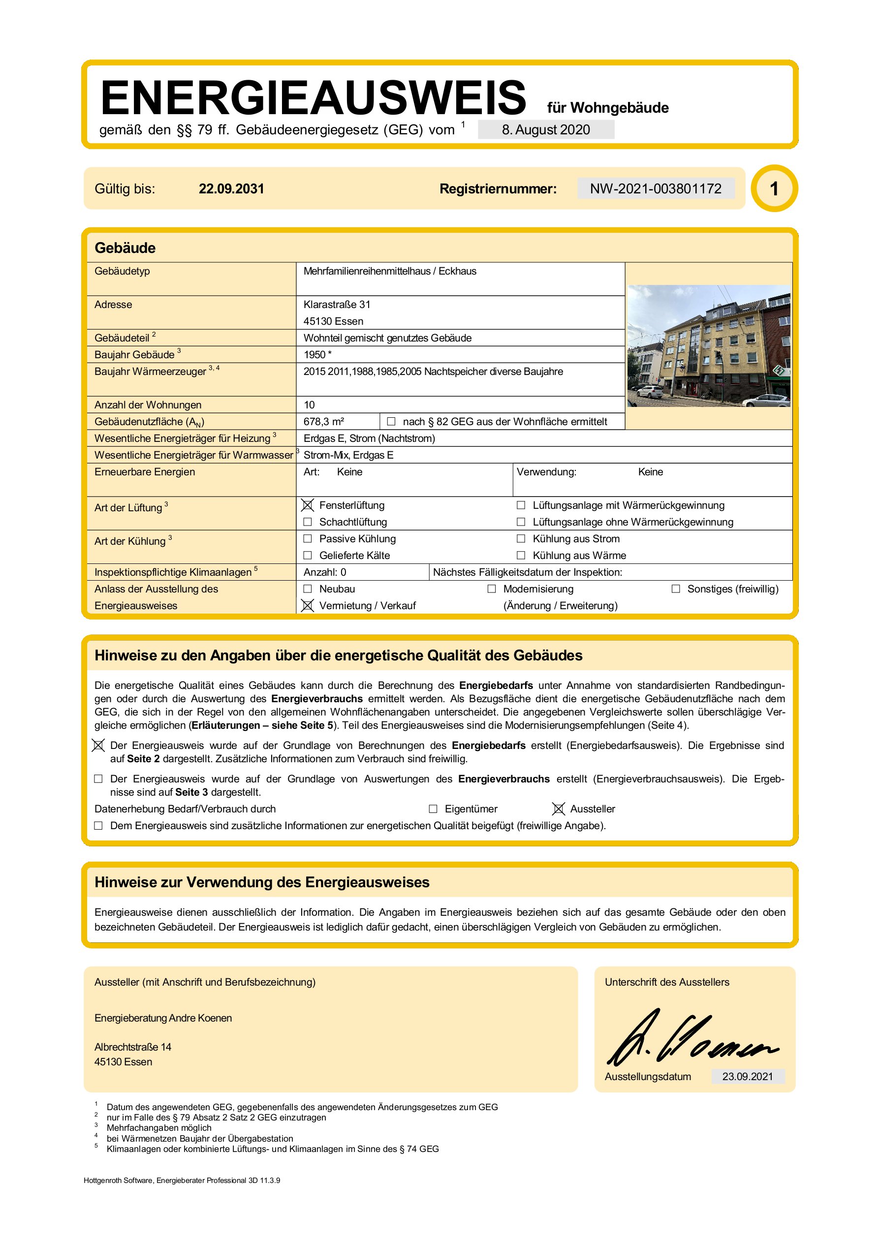 Beide Wohnungen werden von einer Gas-Therme im 3.OG beheizt. Für die Vermietung wurden Wärmemengenzähler an den Heizkörpern installiert, wodurch eine genaue Zuordnung der Heizkosten möglich ist.